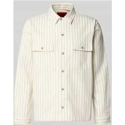 heren overhemdjack van HUGO;Model 'Epoldo';look: all-over motief;Pasvorm: oversized;kraagmodel: kentkraag;Sluiting: enkelrijige knoopsluiting;Patroon: gestreept;Toepassing: Labelstiksel;Mouwvorm: lange mouw;mouwboord: manchet;Manchetsoort: 1-knoopsmanchet;Zakken: borstzak met knopen, zij-steekzakken;materiaalverwerking: denim;Materiaal: puur katoen