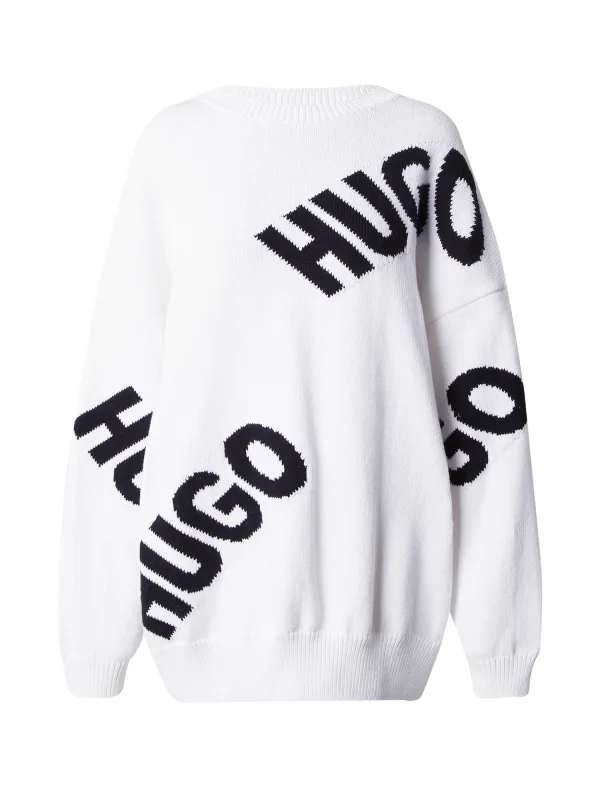 HUGO Oversized trui ‘Slaria’ zwart / offwhite