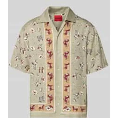 Heren vrijetijdsoverhemd van HUGO;Model 'Espino';look: all-over motief;Pasvorm: oversized;overhemdkraag: reverskraag;knoopsluiting: enkele knopenrij;mouwvorm: korte mouw;Materiaal: lyocell