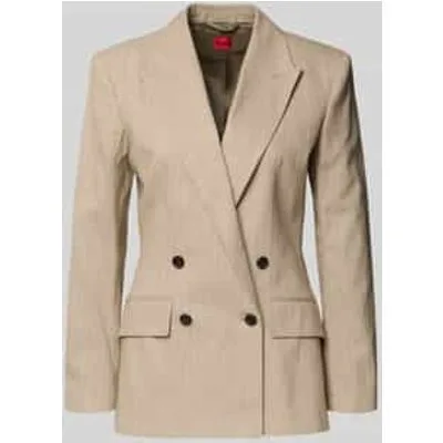 Dames lange blazer van HUGO;Model 'Azenia';Look: All-over motief, Mêlee;Pasvorm: regular fit;kraagmodel: stijgende reverskraag;Motief: glinsterende krijtstreep;Details: schouderpads;Sluiting: dubbele knoopsluiting;Mouwvorm: lange mouw;rompzoom: met splitten;Tassen: klepzakken;materiaalverwerking: twill;Materiaal: katoenmix