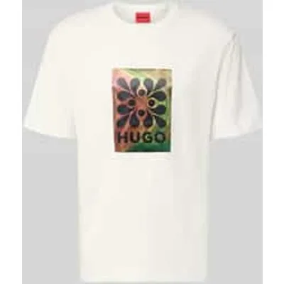 Heren T-shirt van HUGO;Model 'Damoru';look: effen;Pasvorm: regular fit;Applicatie: foto-print, label-opschrift;hals: ronde hals;mouwvorm: korte mouw;Materiaal: puur katoen