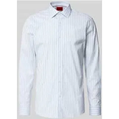 Zakelijk overhemd van HUGO;Model 'Valerio';Look: effen;Pasvorm: Regular fit ;Overhemdkraag: Kentkraag;Knoopsluiting: enkele knopenrij;Motief: gestreept;Pasvorm volgens fabrikant: Modern fit;Applicatie: Labelstitching;Details: Achterpas ;Sluiting: enkele knoopsluiting;Mouwvorm: lange mouwen;Mouwboord: Manchet;Rompzoom: afgerond;Type manchet: Combimanchetten;Materiaal: puur katoen