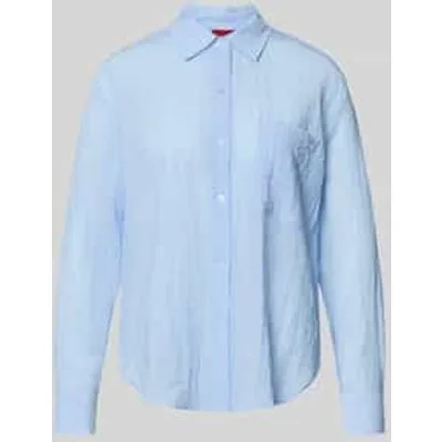 dames overhemdblouse van HUGO;Model 'Ellodhy';look: effen;Pasvorm: relaxed fit;kraagmodel: overhemdkraag;Toepassing: Labelstiksel;hals: V-hals;Sluiting: enkelrijige knoopsluiting;Mouwvorm: lange mouw;mouwboord: manchet;rompzoom: afgerond;Tassen: borstzak;Materiaal: viscosemix