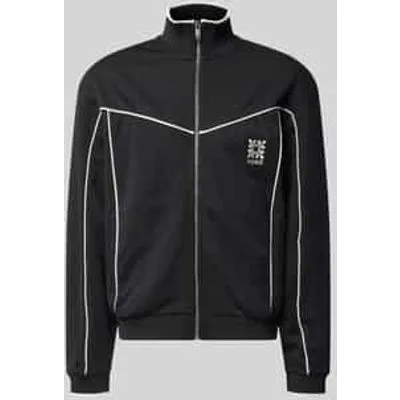 Heren sweatjack van HUGO;Model 'Darynt';look: meerkleurig;Pasvorm: relaxed fit;Sluiting: ritssluiting;Zakken: zij- steekzakken;Details: contraststrepen;Applicatie: gestikt logo;Mouwvorm: lange mouw;Mouwboord: geribd;rompzoom: geribd;Materiaal: katoenmix