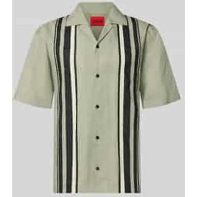 Heren vrijetijdsoverhemd van HUGO;Model 'Espino';look: meerkleurig;Pasvorm: relaxed fit;overhemdkraag: reverskraag;Knoopsluiting: doorlopend;Patroon: gestreept;mouwvorm: korte mouw;Materiaal: mix van linnen en lyocell