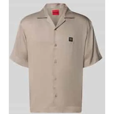 heren vrijetijdsoverhemd van HUGO;Model 'Espino';look: effen;Pasvorm: relaxed fit;overhemdkraag: resortkraag;Knoopsluiting: doorlopend;applicatie: logopatch;Details: achterpas;Sluiting: enkele knoopsluiting;mouwvorm: korte mouw;Materiaalverwerking: twill;Materiaal: lyocell