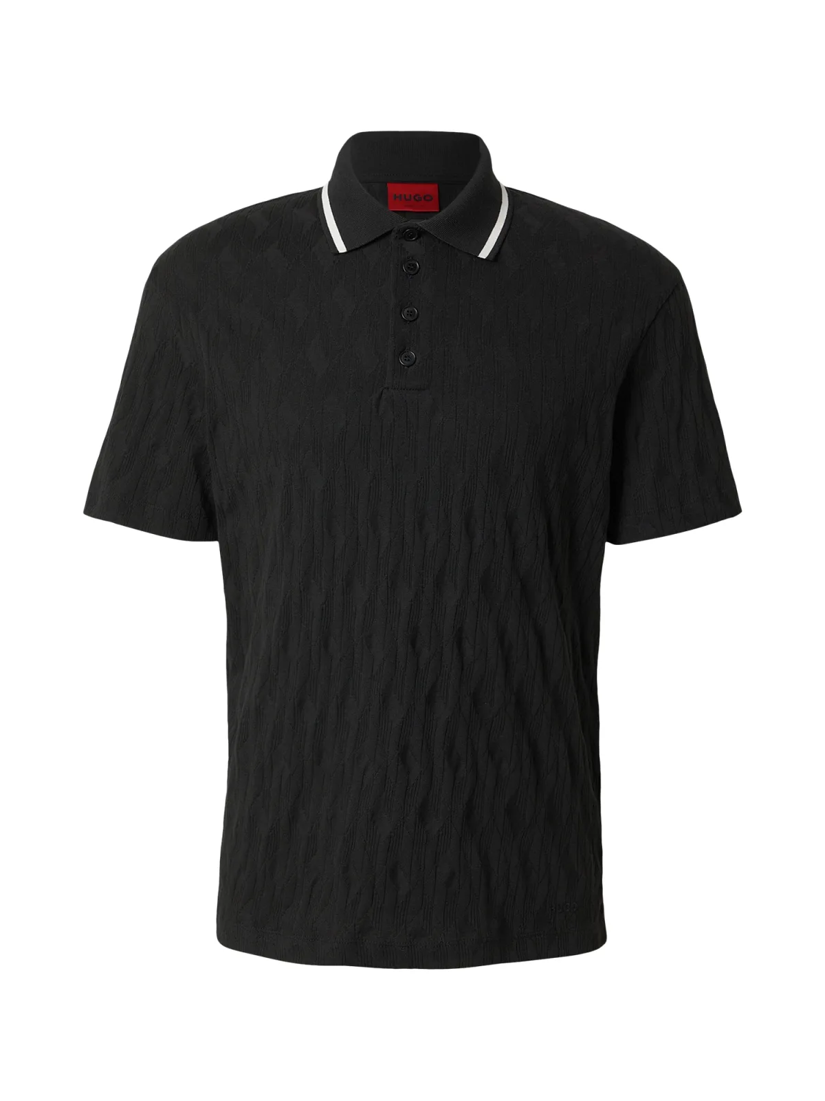 heren poloshirt van HUGO;Model 'Dunik';look: all-over motief;Pasvorm: regular fit;Patroon: structuur;Toepassing: Labelstiksel;kraagmodel: polokraag;hals: V-hals;sluiting: korte knoopsluiting;mouwvorm: korte mouw;Materiaal: puur katoen