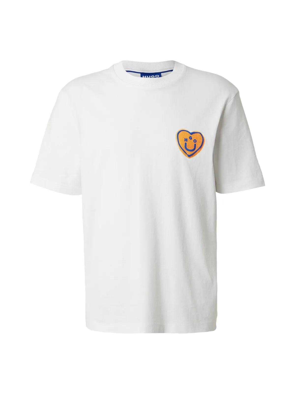 HUGO Shirt ‘Nalentinio’ blauw / lichtoranje / wit