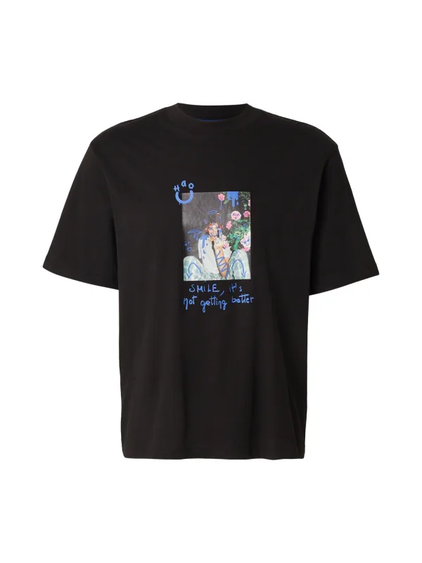 HUGO Shirt ‘Nugobeam’ lichtblauw / rosa / zwart / wit