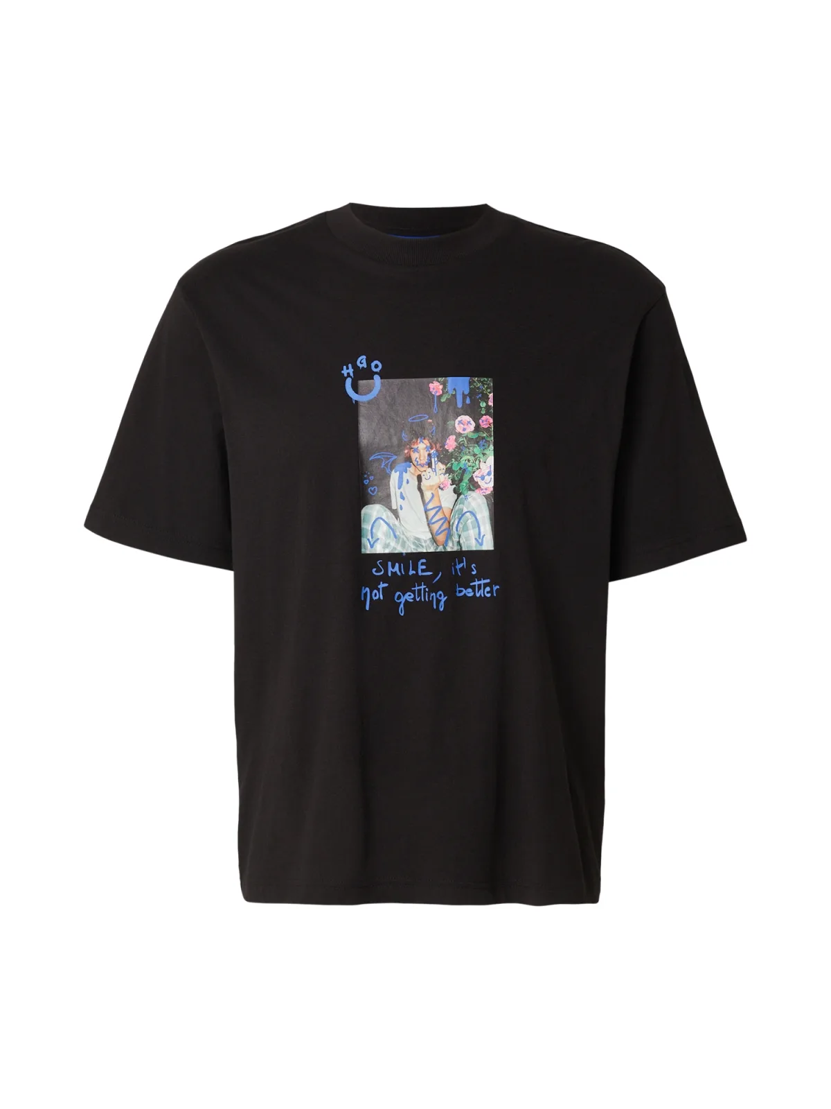 HUGO Shirt ‘Nugobeam’ lichtblauw / rosa / zwart / wit Prijzen