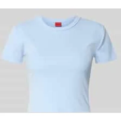 Dames T-shirt van HUGO;Model ‘DELANOR’;look: effen;pasvorm: slim fit;Lengte: kort;Applicatie: Gestikt logo;hals: ronde hals;mouwvorm: korte mouw;Materiaalverwerking: stretch;Materiaal: Katoenmix