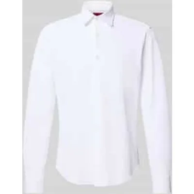 Zakelijk overhemd van HUGO;Model 'Ermo';Look: structuurlook;Pasvorm: Slim fit;Overhemdkraag: Kentkraag;Knoopsluiting: doorknoopsluiting;Applicatie: Gestikt logo;Sluiting: enkele knoopsluiting;Mouwvorm: lange mouwen;Mouwboord: Manchet;Type manchet: Sportmanchet met verstelbare knopen;Materiaalverwerking: Piqué