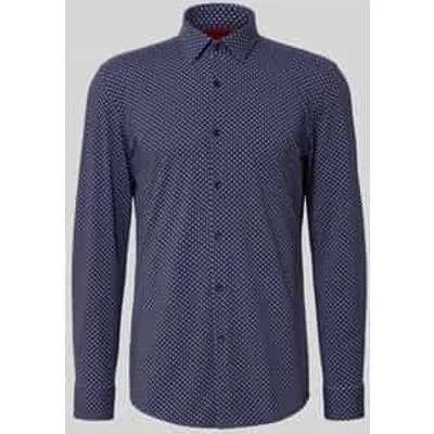 Zakelijk overhemd van HUGO;Model 'Kenno’;Look: All-over motief;Pasvorm: Slim fit;Overhemdkraag: Kentkraag;Knoopsluiting: doorknoopsluiting;Sluiting: enkele knoopsluiting;Mouwvorm: lange mouwen;Mouwboord: Manchet;Type manchet: 1-knoopsmanchet, in wijdte verstelbaar, vierkant;Materiaalverwerking: Stretch;Ruglengte bij maat 40: 75,5 cm;Borstomvang bij maat 40: 52 cm;Schouderbreedte bij maat 40: 48 cm;Mouwlengte bij maat 40: 65,5 cm