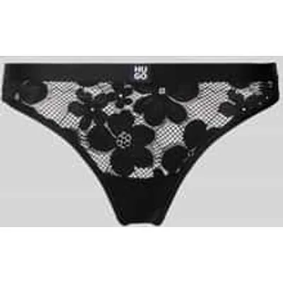 Dames String van HUGO;Model 'Bloom Lace Thong';look: effen/semi-transparant;Applicatie: Labelpatch;Boord: elastisch;materiaalverwerking: kant