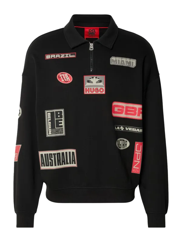 HUGO Sweatshirt ‘Danwyll’ crème / grijs / grenadine / zwart