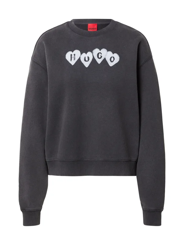 HUGO Sweatshirt ‘Deroxina_8’ zwart / wit