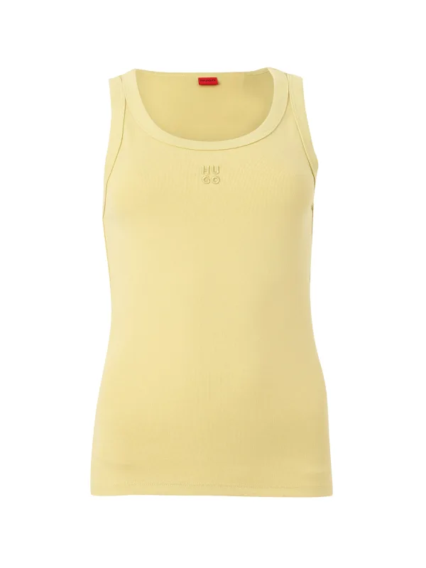 Dames Tank Top van HUGO;Model 'Datamia';Look: effen;Pasvorm: Slim fit;Applicatie: Labelstikken;Hals: U-hals;Model met bandjes: brede bandjes;Materiaalverwerking: Fijnrib;Materiaal: Katoenmix