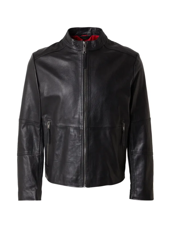 Design: Rechte zoom, Staande kraag, Ritszakken aan de zijkant; Type sluiting: Ritssluiting; Type jas: Bikerjack; Voering: Licht gevoerd; Materiaal: Leer; Motief: Effen; Extra's: Op staal naden, Gladde stof; Pasvorm: Normale pasvorm