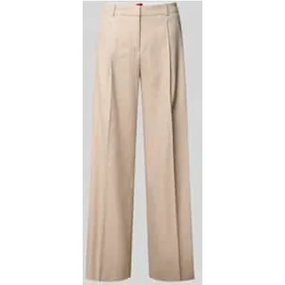 dames wijdte broek van HUGO;Model 'Halati';look: bi-color;Pasvorm: wide leg;Applicatie: logo-applicatie van metaal;Details: bandplooi, riemlussen;Sluiting: knoop, schuifhaak en verborgen ritssluiting;Zakken: zij- steekzakken, gesuggereerde achterzakken;Materiaal: viscosemix