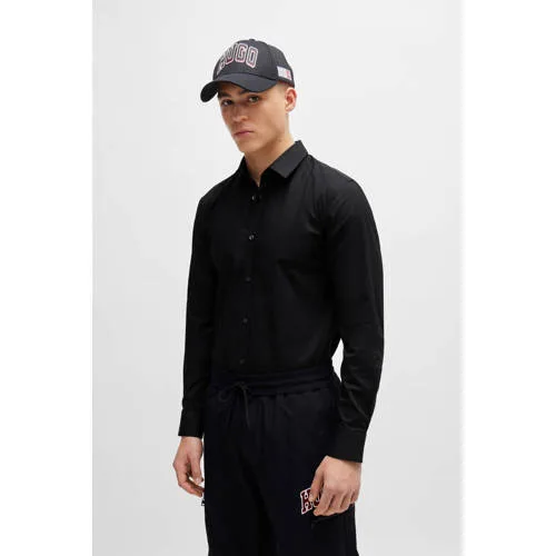 HUGO Elisha slim fit overhemd popeline zwart Strijkvriendelijk Boord