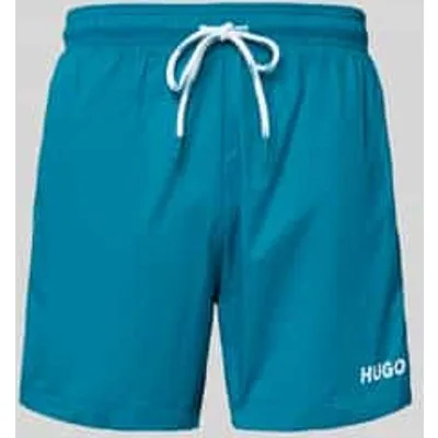 Heren Zwembroek van HUGO;Model 'Haiti';Look: effen;Applicatie: Labelprint;Sluiting: Tunnelkoord;Boord: elastisch;Zakken: Zij- Steekzakken, Achterzak