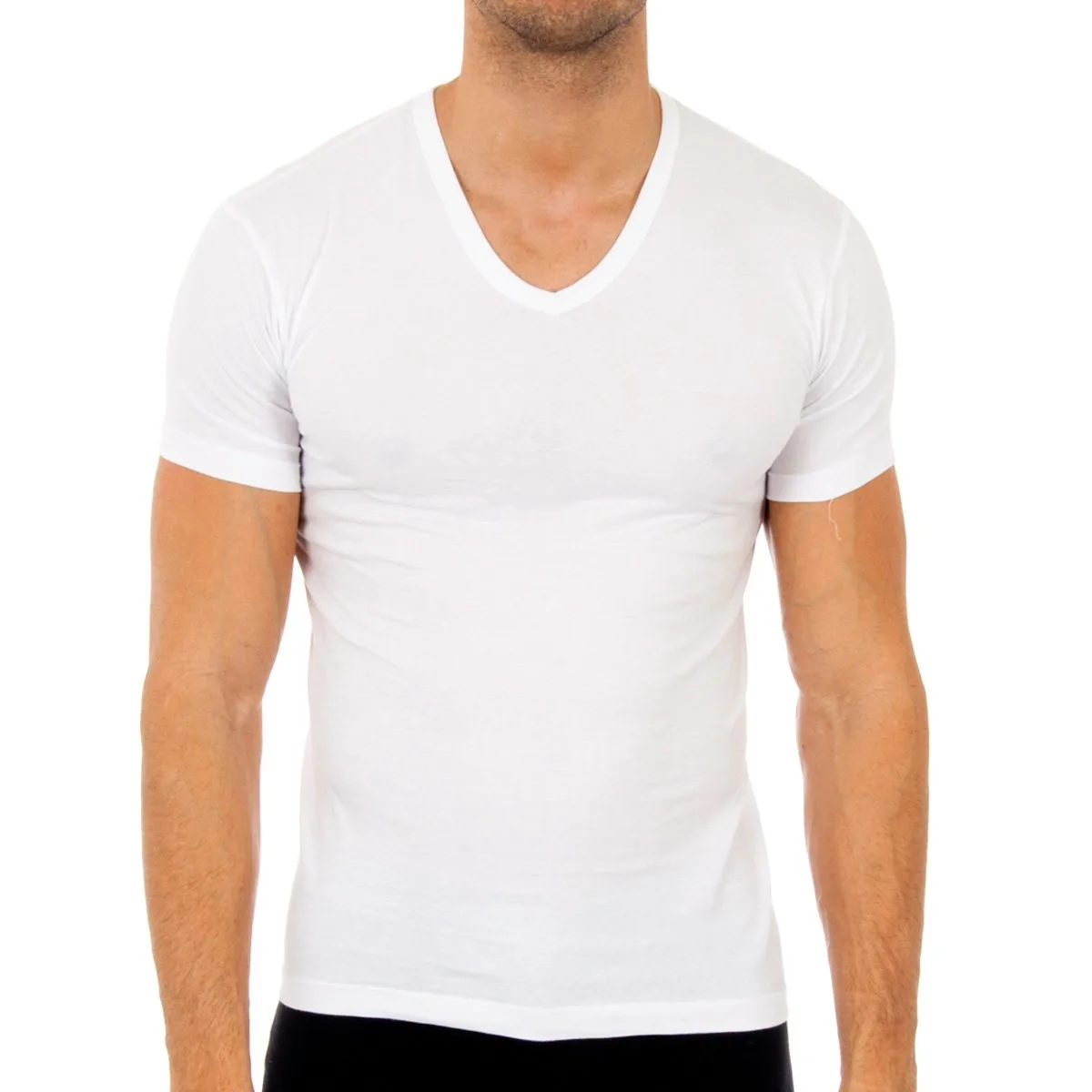 Huidig T-shirt. Korte mouw. V-hals. Soepele stof, zeer zacht en comfortabel. Kledingstuk dat perfect aansluit op het lichaam. Samenstelling: 100% katoen Onderhoud: Handwas op max. temperatuur. 40º. Geen bleekmiddel gebruiken. Droger is niet toegestaan. Strijken op max. temperatuur. 130º. Niet chemisch reinigen.