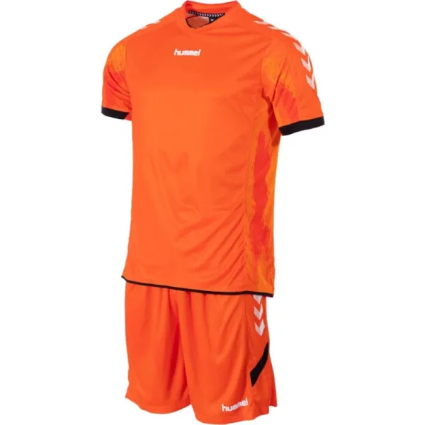 Keepers, stap in stijl het veld op met dit Hummel Bremen keeperstenue voor volwassenen. Het shirt met korte mouwen valt gelijk op door de toffe sublimatieprint met druppels bij de armen. Het shirt heeft een elastische V-hals en kraag met rib-materiaal en ook de mouwen en neklijn hebben een ribboord. De bijpassende shorts heeft een elastische boord met koord. Beide nemen goed vocht op. De chevrons op de mouwen en het hummel logo op je borst laten zien dat jij voor kwaliteit gaat! Materiaal: 100% Polyester