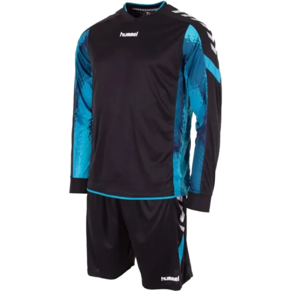 Keepers, ga in stijl het veld op met dit Hummel Bremen keeperstenue voor zowel kinderen als volwassen. Het shirt met lange mouwen valt gelijk op door de toffe sublimatieprint aan de onderkant van de mouwen. Het shirt heeft een elastische V-hals en kraag met rib-materiaal en ook de mouwen en neklijn hebben een ribboord. Het bijpassende keepersbroekje, zonder binnenbroek, heeft een elastische boord met koord. Het tenue is gemaakt van sneldrogend materiaal. De chevrons op de mouwen en het hummel logo op je borst laten zien dat jij voor kwaliteit gaat! De juniormaten hebben padding op de ellebogen voor extra bescherming. Materiaal: 100% Polyester