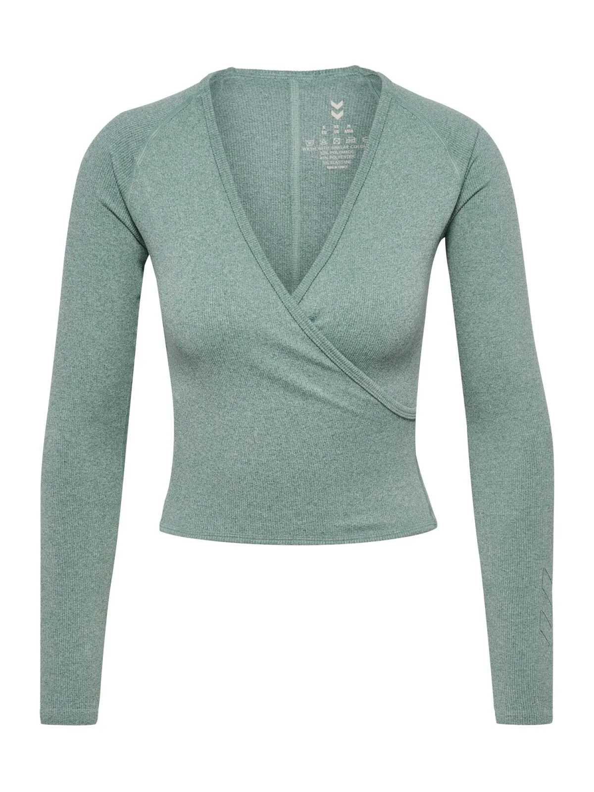 Design: Raglanmouwen, Diepe snit/decolleté, Wikkel-look; Materiaal: Jersey; Halstype: V-hals; Motief: Mélange; Extra's: Voelt zacht aan, Naadloos; Pasvorm: Normale pasvorm; Armlengte: Lange mouw; Lengte: Normale lengte