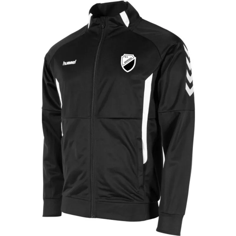 Dit comfortabele trainingsjack van hummel is gemaakt van 100% polyester tricot: duurzaam materiaal met een geborstelde binnenzijde, wat het trainingspak bij uitstek geschikt maakt voor trainingen en warming-ups. Het jack wordt gekenmerkt door de colourblock op de body en diverse contrastpanels. Het jack bevat twee steekzakken met rits, van hoogwaardige SBS-kwaliteit. De logo's en chevrons zijn op het jack geprint. Maten:kinderen 116 t/m 164volwassenen S t/m 3XL