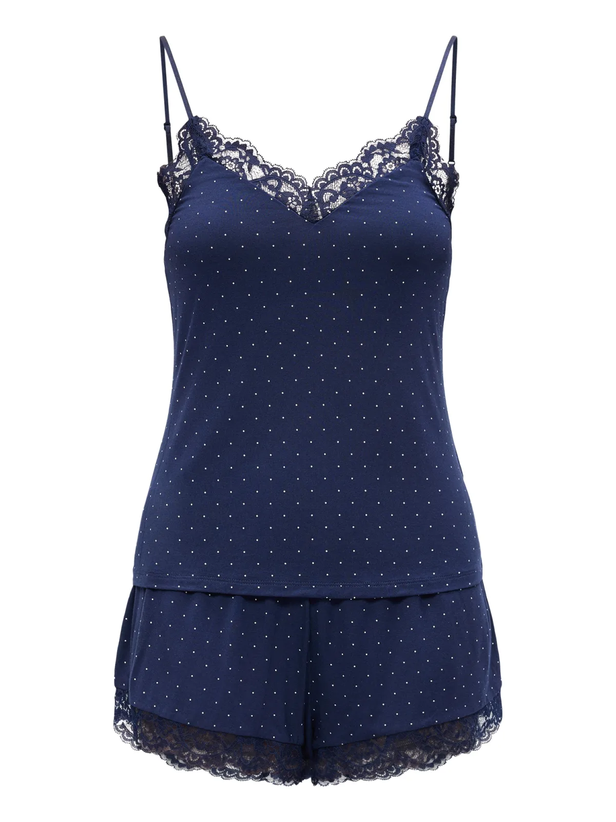 Design: Elastische taille/zoom, Geschulpte zoom; Materiaal: Viscose; Motief: Gestippeld; Details: Kant; Extra's: Verstelbare bandjes, All-over patroon, Voelt zacht aan; Aantal per set: 2-delig; Pasvorm: Normale pasvorm