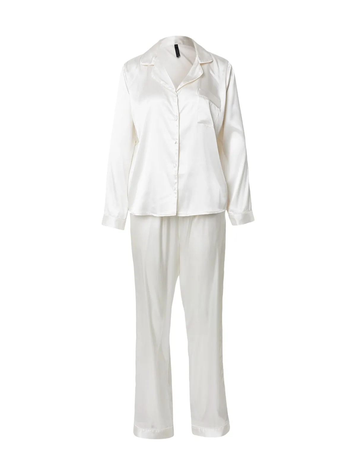 Design: Elastische taille/zoom, Knop placket, Revers kraag, Borstzak; Materiaal: Satijn; Motief: Effen; Extra's: Op staal naden, Gladde stof; Aantal per set: 2-delig