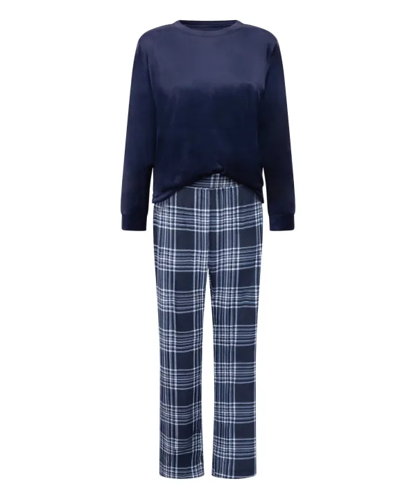Hunkemöller Pyjama navy / blauw gemêleerd / offwhite