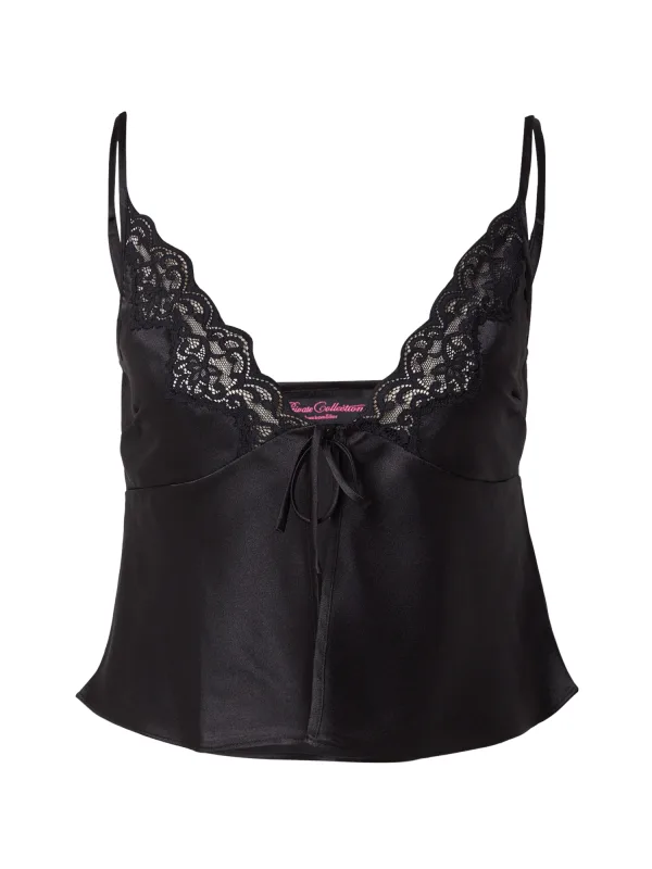 Design: Diepe snit/decolleté, Om te knopen/binden; Materiaal: Satijn; Motief: Effen; Details: Kant; Extra's: Op staal naden, Gladde stof; Armlengte: Mouwloos