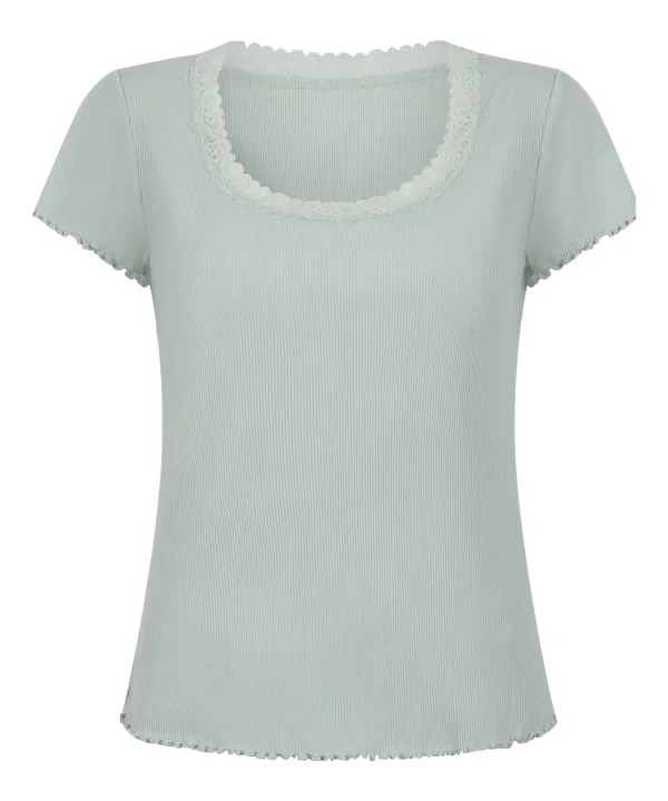 Design: Geschulpte zoom; Materiaal: Jersey; Motief: Effen; Details: Kant; Extra's: Op staal naden, Voelt zacht aan; Armlengte: Kwartmouw