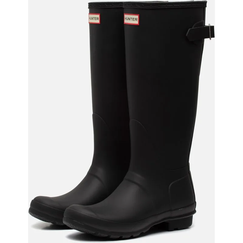 Deze originele Wellington-boot van Hunter is een zwarte premium designer wellie-boot, perfect voor natte en modderige wandelingen of voor tijd doorbrengen in de tuin. Deze hoge laarzen voor dames zijn volledig waterdicht, handgemaakt en hebben een zware rubberen zool. Een polyester voering houdt je voeten comfortabel en snug. Ze zijn voorzien van het Hunter-logo en een verstelbare achterband.