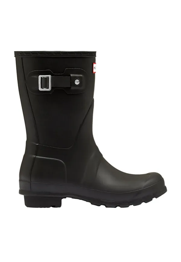 De originele korte Wellington laars van Hunter is een zwarte premium designer regenlaars. perfect voor natte en modderige wandelingen of tijd doorbrengen met rondscharrelen in de tuin. Deze halfhoge laarzen voor dames zijn volledig waterdicht. handgemaakt en voorzien van een heavy-duty rubberen buitenzool. Een polyester voering houdt je voeten comfortabel en knus. Ze zijn compleet met Hunter-branding.