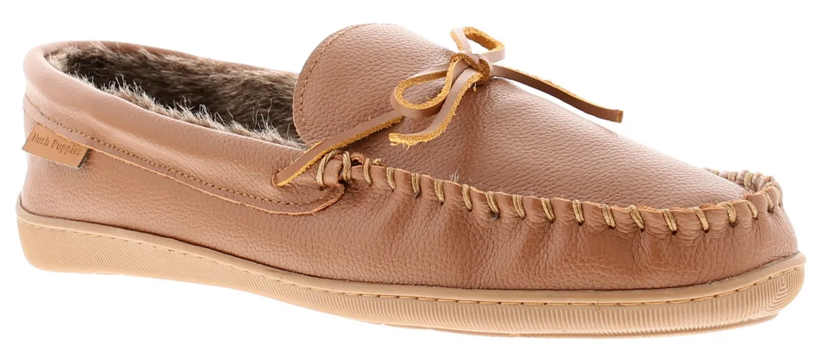 Leren herenpantoffel van Hush Puppies, the Ace met knusse faux fur voering en sok. De binnen-/buitenzool is zacht en flexibel om te dragen en toch slijtvast.