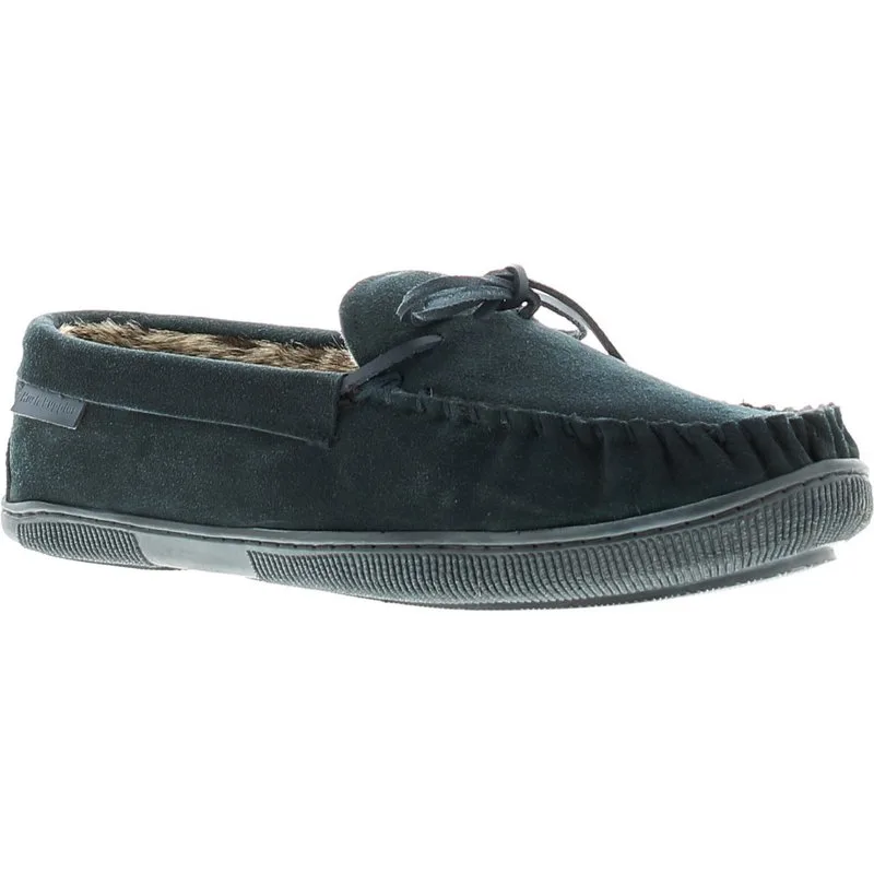 Ontspan in stijl met de luxe heren Ace pantoffels van Hush Puppies. De marineblauwe suède pantoffels, in een gezellige mocassinstijl, hebben een warme voering van imitatiebont, een merklogo aan de zijkant en kunnen zowel binnen als buiten gedragen worden. Een moeiteloos comfortabele manier om rond te loungen.