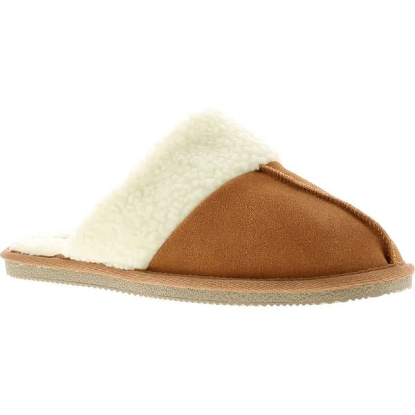 Damespantoffelmuiltjes van suèdeleer met een behaaglijke voering van imitatiebont en een comfortabele sok van traagschuim.
