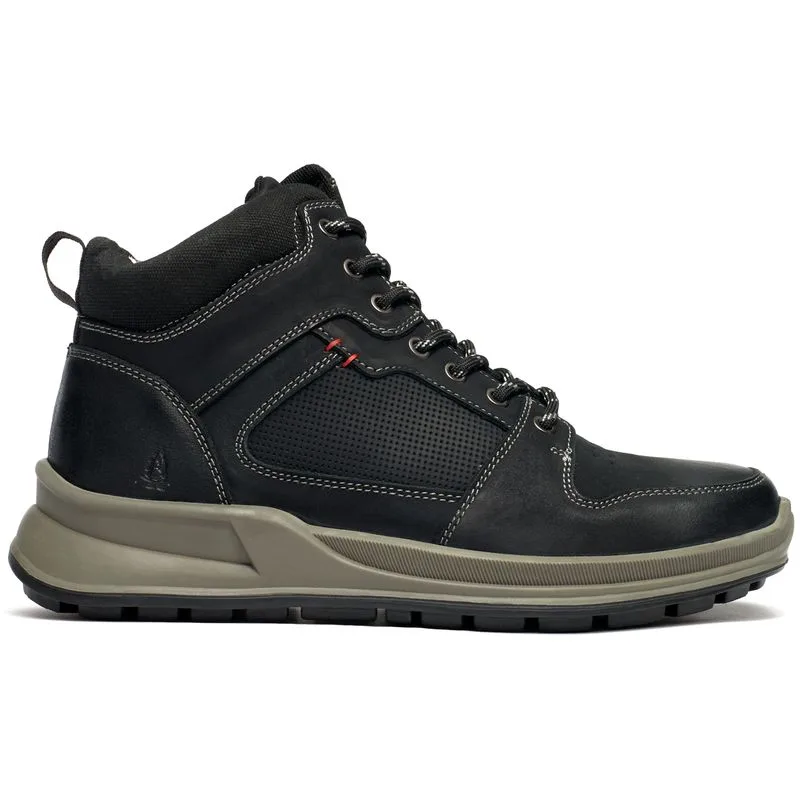 Zwarte Hush Puppies Arnie-laarzen voor heren, gemaakt van leer en een rubberen zool. Met: noppenzool, gevoerde hielkraag, hiellus, noppenzool en volledig gevoerd.