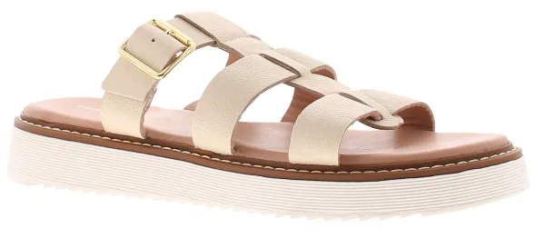 Hush Puppies Dames Sandalen Celeste Slip-On Gladiator Leer Gesp Beige