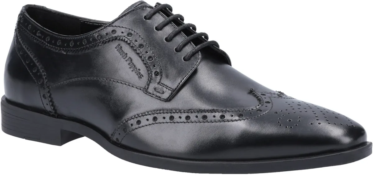 Klassieke veterschoen, vleugeltip, Oxford Brogue-schoen van Hush Puppies; Elliot Brogue is gemaakt van leer en heeft een voetbed van traagschuim.
