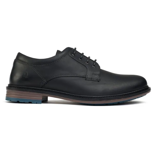 Zwarte Hush Puppies julian schoenen voor heren, gemaakt van leer en een rubberen zool. Met: gevoerde hielkraag, geprofileerde zool, comfortabele binnenzool, gewaxte veters en gevoerde binnenzool.