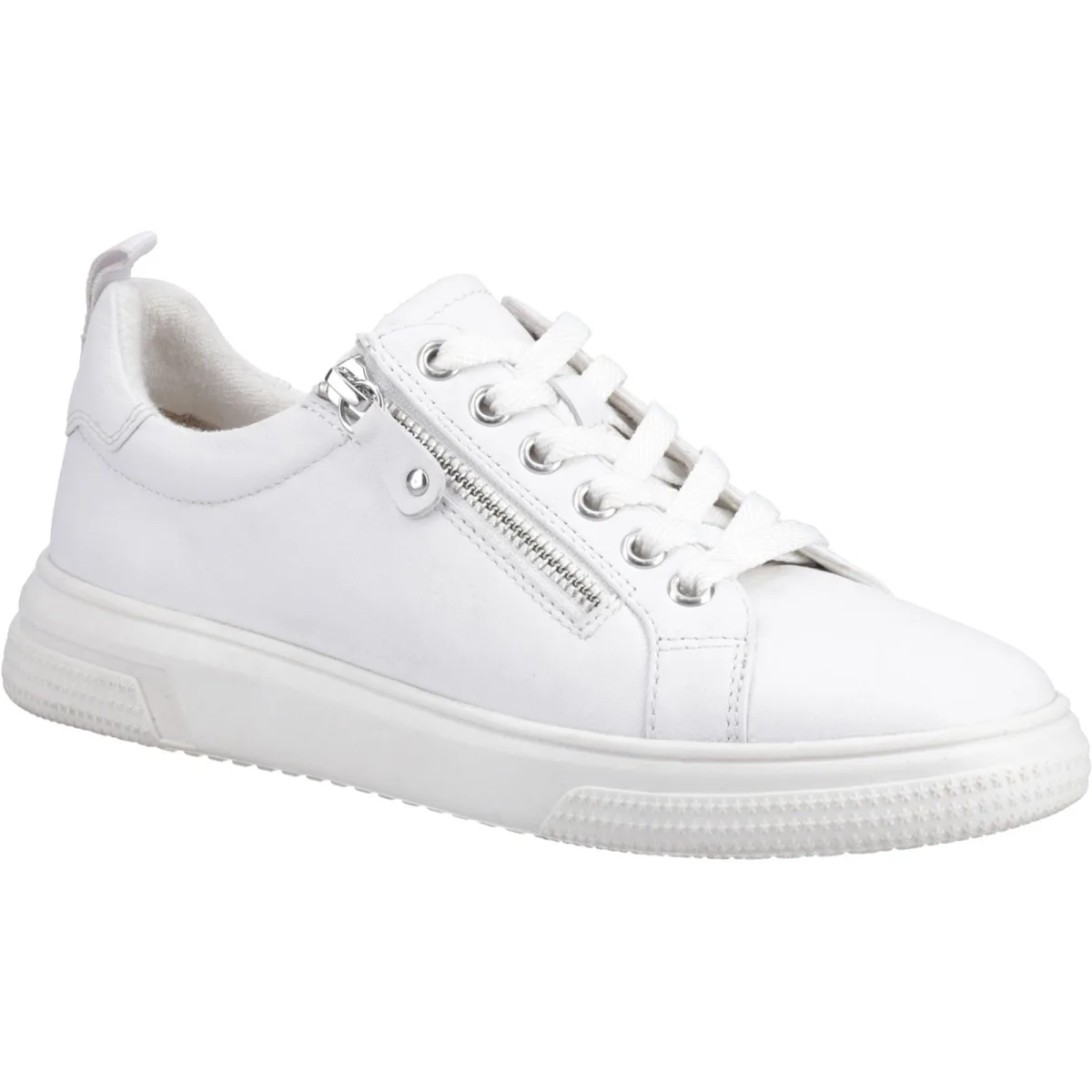 Hush Puppies Martha Leren Dames Witte Sneakers