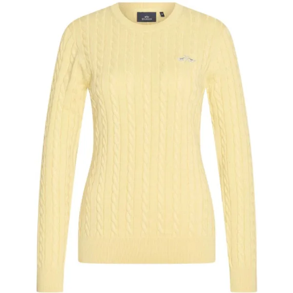 Zacht luxe katoengaren * Fully fashioned * Kabelpatroon op body en mouwen * Ribgebreide ronde hals, manchetten en zoom * Geborduurd paardenlogo op de borst 100% Cotton