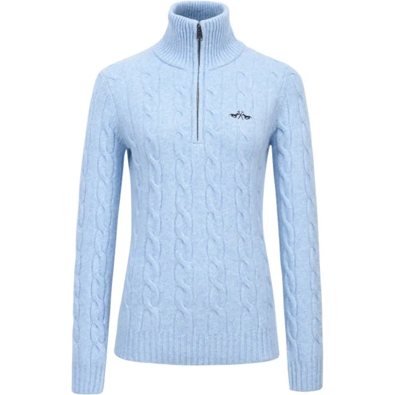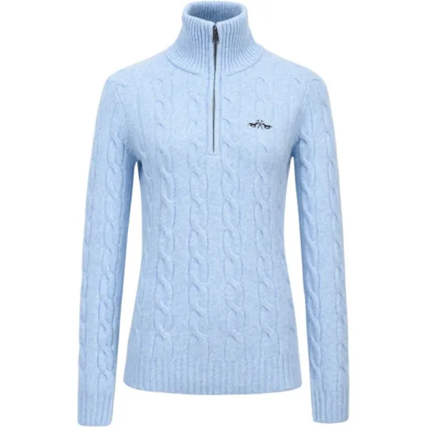 Speciale luxe kabelgebreide trui * Pully met halve rits * Paardenlogo op de borst met lurex borduursel * Metalen paardenbit aan de onderste zoom * Ton-sur-ton ribboorden bij de manchetten en onderste zoom * Hoge opstaande kraag met ritssluiting * Volledig afgewerkt bij de armsgaten * Slim fit 33% cotton, 26% acrylic, 23% polyamide, 10% bamboo, 5% wool, 3% elasthane