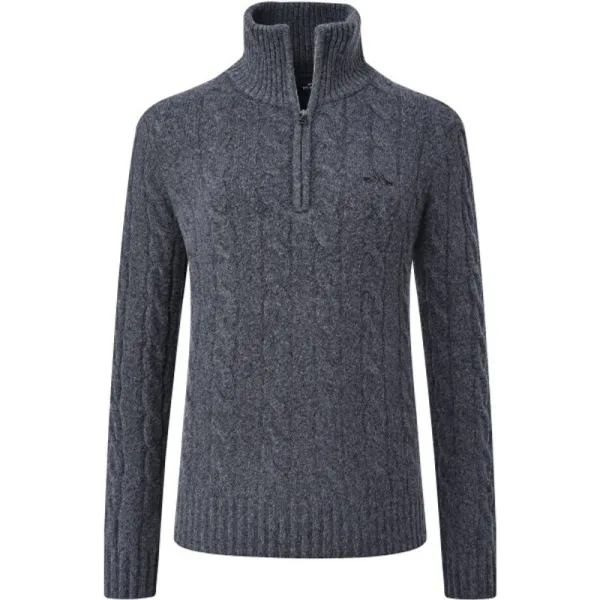 Speciale luxe kabelgebreide trui * Pully met halve rits * Paardenlogo op de borst met lurex borduursel * Metalen paardenbit aan de onderste zoom * Ton-sur-ton ribboorden bij de manchetten en onderste zoom * Hoge opstaande kraag met ritssluiting * Volledig afgewerkt bij de armsgaten * Slim fit 33% cotton, 26% acrylic, 23% polyamide, 10% bamboo, 5% wool, 3% elasthane