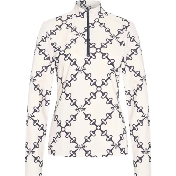 Tech T-shirt gemaakt van functioneel materiaal * All-over print * Lange mouwen * UV-bescherming * Sneldrogend * Ademend, zodat de lichaamstemperatuur altijd op hetzelfde niveau blijft * 4-weg stretch voor extreme flexibiliteit en een perfecte lichaamsfit * Zacht materiaal met maximaal draagcomfort * Getailleerd model met afgeronde kraag voor een vrouwelijke uitstraling * Ritsluiting middenvoor * HV Polo metalen munt, onderkant aan de linkerkant van de drager * Functionele print aan de binnenkant van de halslijn Travel jersey : 92% polyamide / 8% elastane