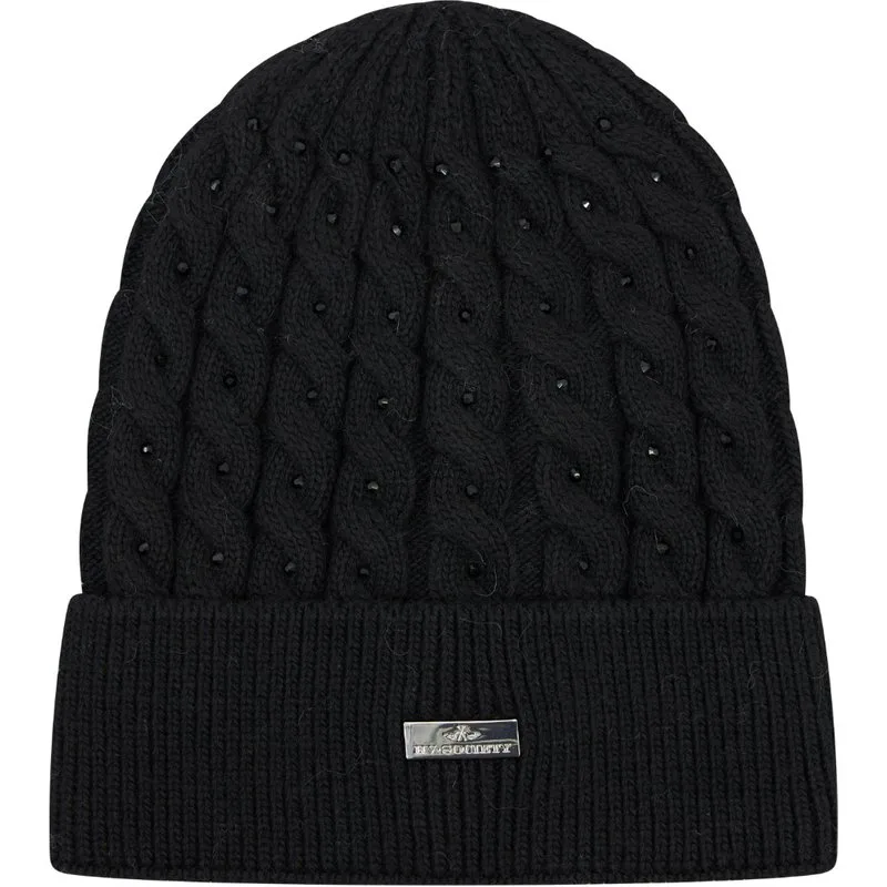Gebreide muts * Tonale strassteentjes in het midden van de kabels * Kabeldesign * Microfleece voering 40% viscose / 30% polyester /20% polyamide /10% wool
